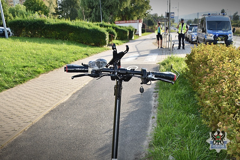 Poruszając się hulajnogą elektryczną pamiętajmy o bezpieczeństwie. Poważne zdarzenie drogowe w Wałbrzychu