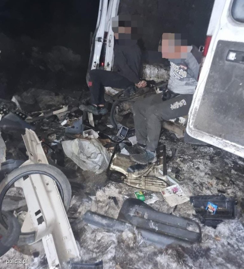 Decyzja o sprawdzeniu miejsca w Baniosze okazała się trafna. W nocy zauważył dużego busa i dwóch mężczyzn wywlekających z jego wnętrza odpady z warsztatu samochodowego i pozostałości po rozmontowanych pojazdach. Natychmiast do pomocy wezwał kolegów z Komisariatu w Górze Kalwarii, działając wspólnie zatrzymali sprawców przestępstwa.