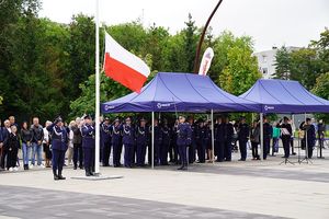 Część przemówień okolicznościowych zakończył nadinsp. Dariusz Wesołowski - Komendant Wojewódzki Policji we Wrocławiu, który podczas swojego wystąpienia życzył policjantom, aby te najbliższe lata służby na rzecz drugiego człowieka upłynęły im zawsze w poczuciu świetnie zrealizowanej misji, w poczuciu bezpieczeństwa w służbie i w poczuciu tego, że ta codzienna misja, którą będą realizować, jest bardzo ważna dla drugiego człowieka.