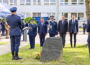 Kolejnym punktem uroczystości było złożenie kwiatów pod pomnikiem Ofiar Zbrodni Katyńskiej i zapalenie zniczy przez nowo przyjętych funkcjonariuszy. Uroczystą oprawę uroczystości zapewniła Orkiestra Komendy Wojewódzkiej Policji w Łodzi.