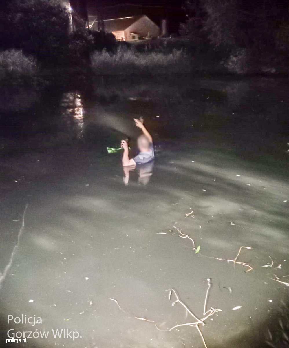 Udało się ustalić, że mężczyzna dzwonił z okolic ulicy Śląskiej. Policjanci sprawdzali okoliczne pola. Przeglądali także mapy, by zlokalizować jakikolwiek zbiorniki wodne w pobliżu. W pewnym momencie, w niemal kompletnej ciemności, udało się nawiązać kontakt głosowy z wzywającym pomocy mężczyzną. Policjanci wraz ze strażakami szli trudno dostępnym, mocno zarośniętym terenem. W końcu udało im się namierzyć mężczyznę. Był zziębnięty i przestraszony. Znajdował się kilkanaście metrów od brzegu i nie mógł samodzielnie wyjść. 59-latka wyciągnęli strażacy z pomocą liny. Po udzieleniu mu pierwszej pomocy został przekazany załodze pogotowia, które przewiozło mężczyznę do gorzowskiego szpitala.