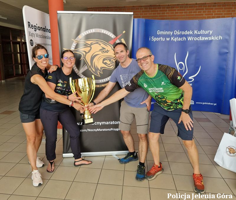 W miniony weekend jeleniogórscy policjanci uczestniczyli w XI Nocnym Maratonie z Przygodami dla Służb Mundurowych i ich Sympatyków „Ryś”, którego organizatorem była Służba Więzienna. Odbył się on na trasach usytuowanych w okolicach Kątów Wrocławskich. Na wytyczonych trasach na uczestników czekało 9 punktów kontrolnych. W zawodach wystartowało ponad 100 biegaczy oraz około 100 rowerzystów. Jeleniogórscy policjanci zajęli 3 miejsce w klasyfikacji mundurowej.
