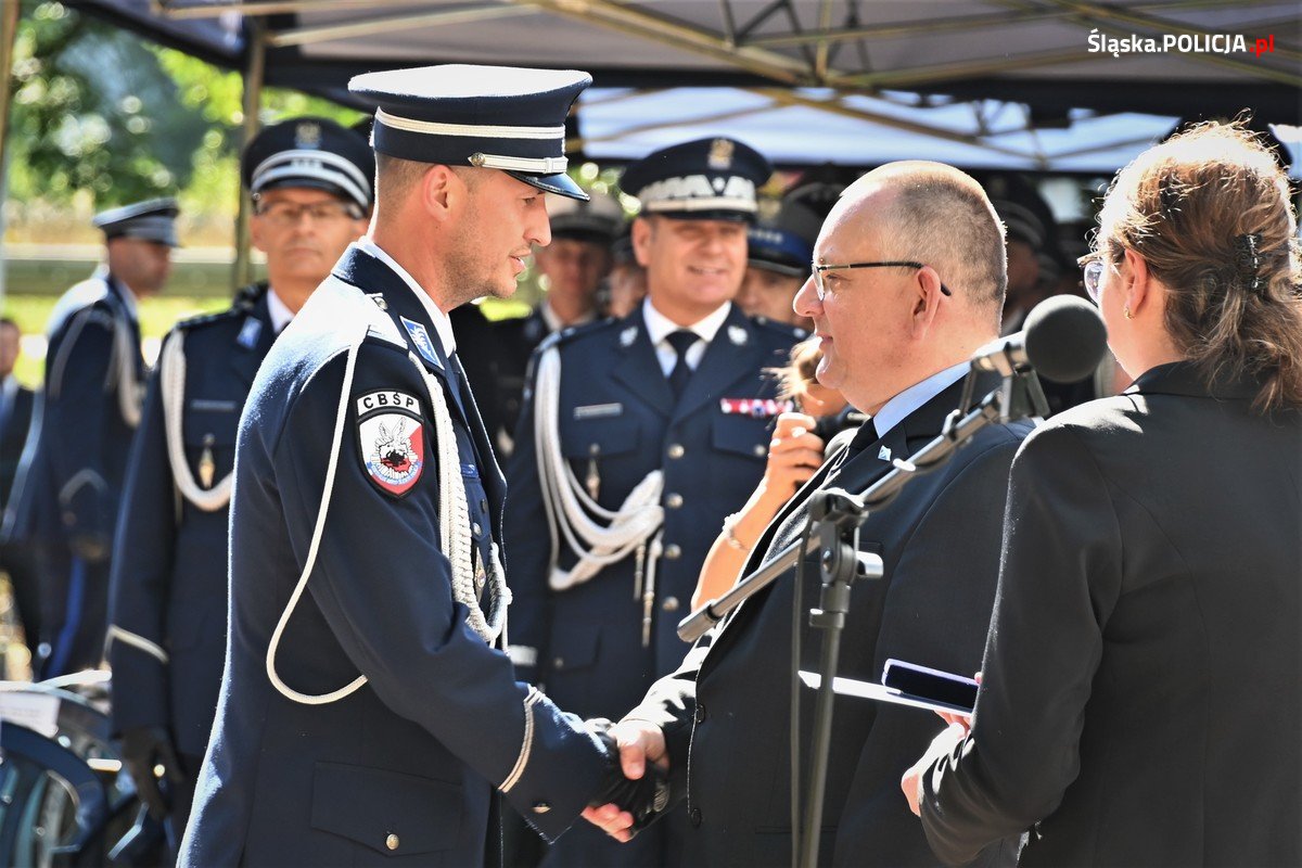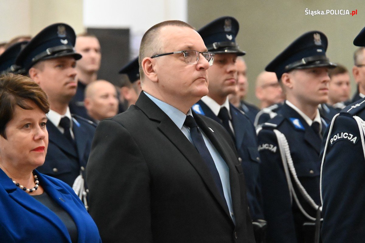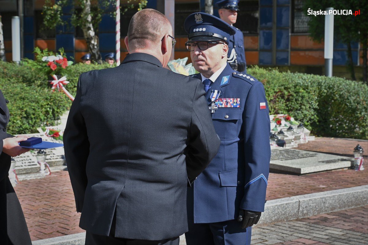 Następnie wręczone zostały odznaczenia: „Medal za Zasługi dla Policji”, który otrzymał dr Janusz Mikitin z Ogólnopolskiego Stowarzyszenia „Rodzina Policyjna 1939 r.”, Medal „Pro Patria”, który otrzymała nadkom. Karolina Szlęzak - KWP w Katowicach, Złotą Odznakę Honorową za Zasługi dla Województwa Śląskiego, którą otrzymała Iwona Laskowska oraz „Odznaczenia 100-lecia Policji Województwa Śląskiego”, które otrzymali: insp. Mariusz Krzystyniak – Pierwszy Zastępca Komendanta Wojewódzkiego Policji w Katowicach, insp. Łukasz Fołta – Naczelnik Zarządu CBŚP w Katowicach, Magdalena Szewczuk–Szturc – Dyrektor Wydziału Spraw Obywatelskich i Cudzoziemców Śląskiego Urzędu Wojewódzkiego w Katowicach, podinsp. Krzysztof Musielak z Ministerstwa Obrony Narodowej, Małgorzata Włodek z Ogólnopolskiego Stowarzyszenia „Rodzina Policyjna 1939 r.”, Irena Matuszak z Ogólnopolskiego Stowarzyszenia „Rodzina Policyjna 1939 r.”, Stanisław Choroba z Ogólnopolskiego Stowarzyszenia „Rodzina Policyjna 1939 r.”, Witold Terlecki - Dyrektor Liceum Ogólnokształcącego im. Mikołaja Kopernika w Katowicach, mł. insp. Sławomir Zagrobelny – Komendant Miejski Policji w Sosnowcu, mł. insp. Paweł Komenda – Naczelnik Wydziału Doboru i Szkolenia KWP w Katowicach, asp. sztab. Łukasz Wiernek z OPP w Katowicach, asp. sztab. Maciej Dziergas – z ZW NSZZ Policjantów Województwa Śląskiego oraz Komenda Wojewódzka Policji w Katowicach – które odebrał I Zastępca Komendanta Wojewódzkiego Policji w Katowicach.