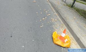 Ku zdziwieniu funkcjonariuszy w trakcie ucieczki podejrzany wyrzucił przez okno samochodu torbę, z której już w locie wysypywała się substancja koloru brązowego. Okazało się, że były to narkotyki. Chwilę później sprawca stracił panowanie nad pojazdem, wjechał na chodnik, uszkadzając skodę. Próbował jeszcze uciekać pieszo, ale został szybko zatrzymany przez mundurowych.