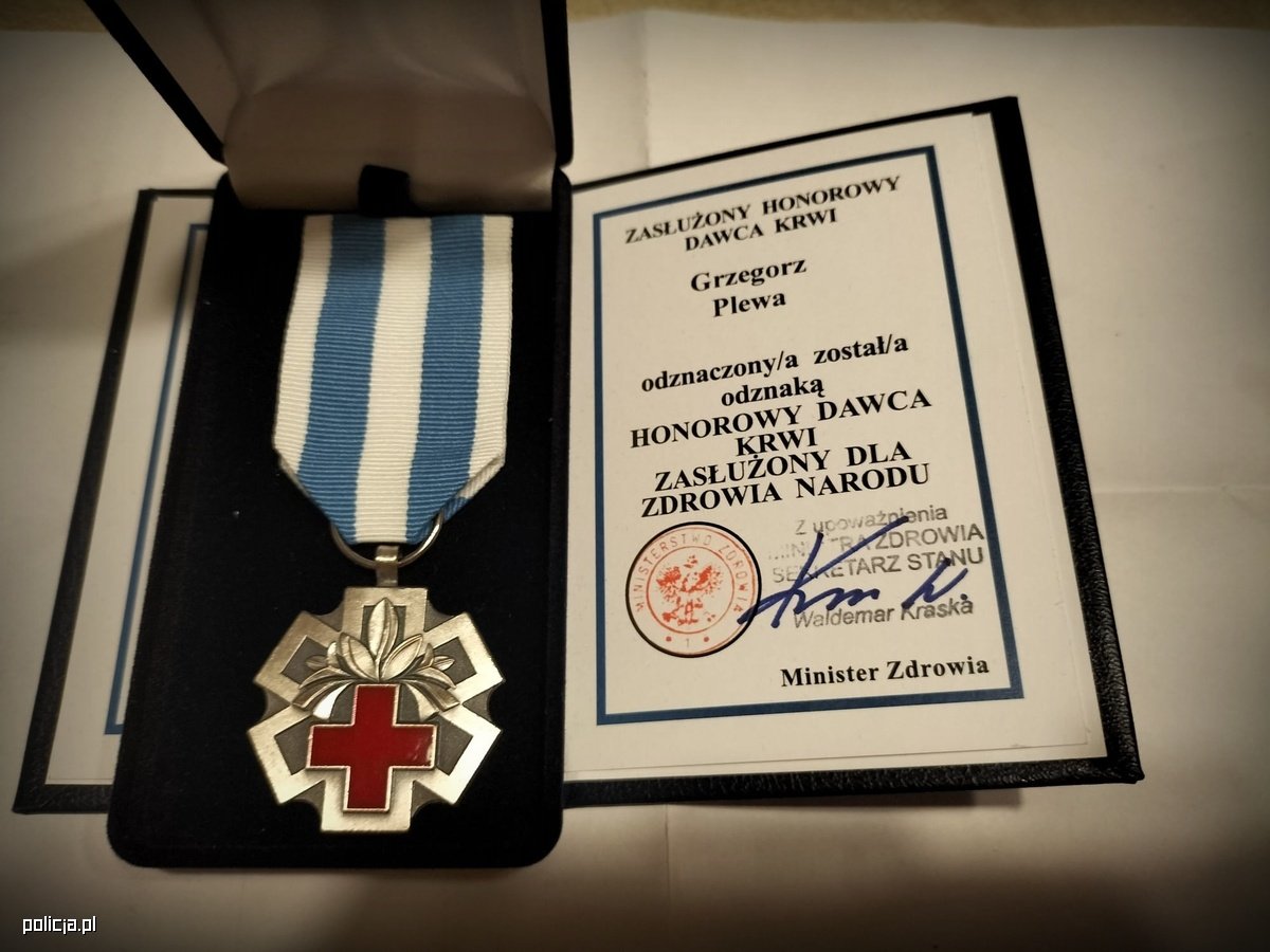 Bielski policjant pomaganie ma we krwi. Od 18 roku życia wspiera regionalne krwiodawstwo. W sumie oddał już ponad 21 litrów krwi oraz 11 litrów osocza. Teraz otrzymał państwowe odznaczenie „Honorowy Dawca Krwi - Zasłużony dla Zdrowia Narodu”. Grzegorz - gratulujemy i życzymy dalszej aktywności pomocowej.