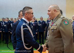 Wyróżnieni Medalami Za Zasługi dla Policji Decyzją Ministra Spraw Wewnętrznych i Administracji Mariusza Kamińskiego zostali udekorowani przez Komendanta Wojewódzkiego Policji w Łodzi nadinspektora Sławomira Litwina oraz Wojewodę Łódzkiego Karola Młynarczyka. Złotym Medalem Za Zasługi dla Policji uhonorowany został Komendant Wojewódzki Państwowej Straży Pożarnej w Łodzi nadbrygadier Grzegorz Janowski, Srebrny Medal Za Zasługi dla Policji odebrali: Starosta Powiatu radomszczańskiego Beata Pokora oraz Dyrektor Wojewódzkiego Ośrodka Ruchu Drogowego w Łodzi Piotr Romek. Były Komendant Placówki Straży Granicznej w Łodzi kapitan rezerwy Marcin Mróz przyjął Brązowy Medal Za Zasługi dla Policji.
