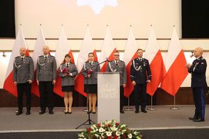 – Obchodzona w tym roku 105. rocznica odzyskania przez Polskę Niepodległości to ważny dzień w sercu każdego Polaka. Dzisiaj mamy wielkie szczęście, aby żyć w wolnej, bezpiecznej i Niepodległej Polsce. Jednym z fundamentów wolności jest bezpieczeństwo, zarówno to zewnętrzne, fundamentalne, jak i równie ważne w czasie pokoju, wewnętrzne. O to bezpieczeństwo wewnętrzne przede wszystkim dba największa, powołana do tego celu formacja mundurowa – Polska Policja. To Wy tworzycie mózg tej formacji. To dzięki Wam Polska Policja jest tak profesjonalną formacją, jak oceniają ją nasi obywatele. Na przestrzeni ostatnich lat te oceny społecznego zaufania są niezwykle wysokie. To co nas cieszy to spadający poziom przestępczości. W badaniach Centrum Badania Opinii Społecznej 88% badanych wskazało, że Polska jest krajem, w którym żyje się bezpiecznie, a 96% czuje się bezpiecznie w okolicy miejsca zamieszkania. Niekwestionowaną zasługą w poczuciu bezpieczeństwa Polaków jest Wasza służba i praca. Za Waszą niezwykłą pracę, służbę, oddanie i poświęcenie oraz profesjonalizm pragnę w imieniu kierownictwa KGP nisko się Wam pokłonić i bardzo podziękować. To co robicie każdego dnia przekłada się na wysokie wskaźniki bezpieczeństwa – gratulował wyróżnionym gen. insp. Jarosław Szymczyk.