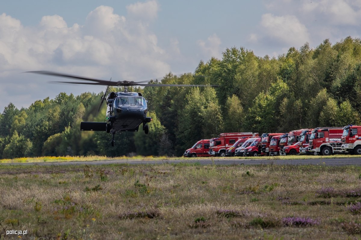 Policyjny śmigłowiec pomagał w akcji gaszenia pożaru