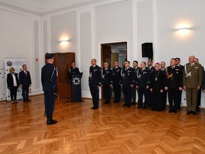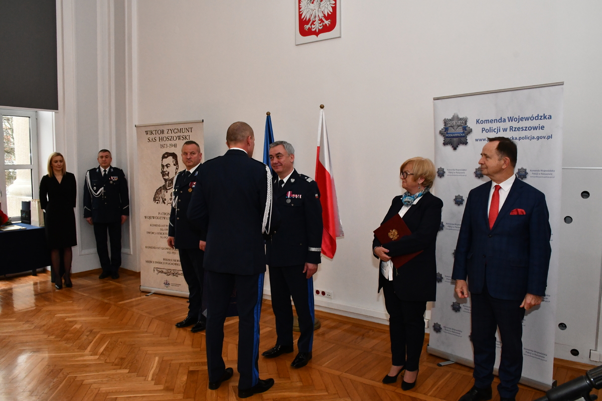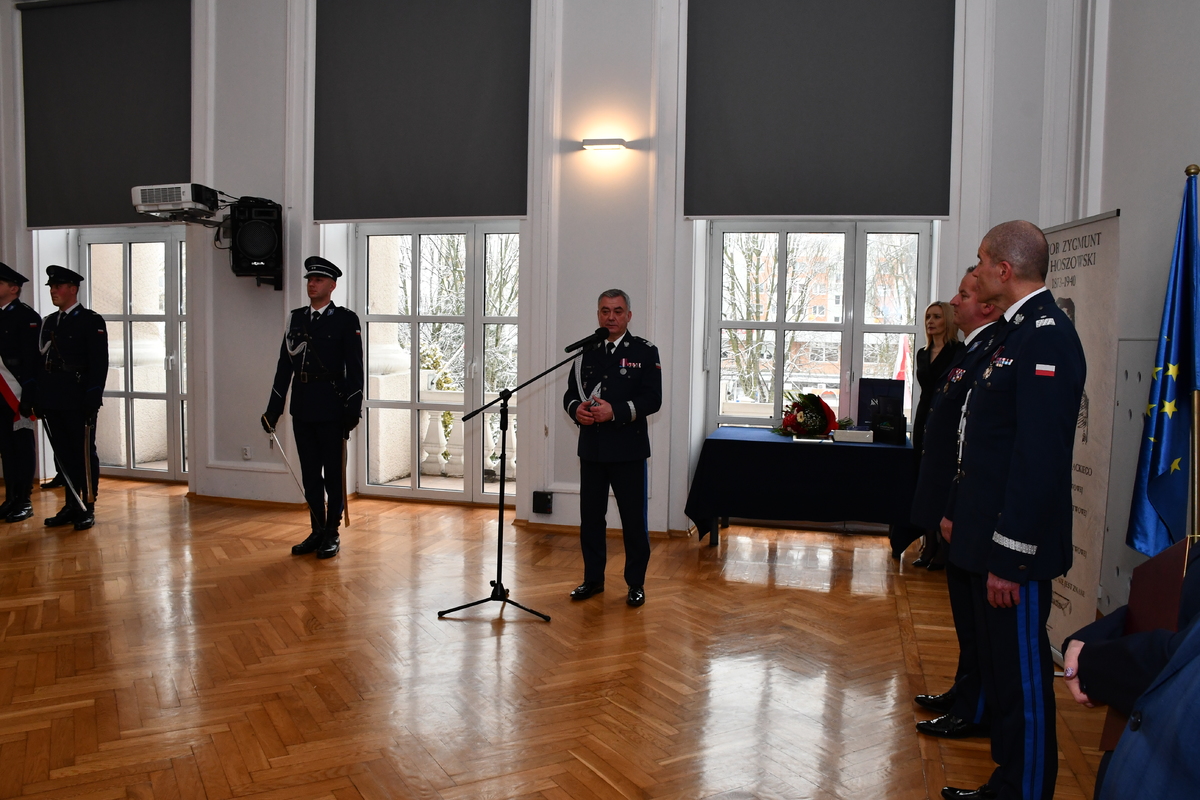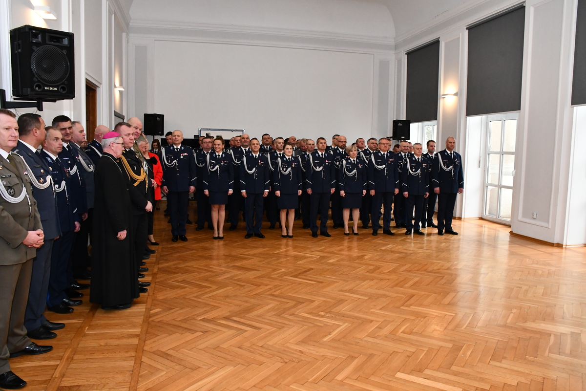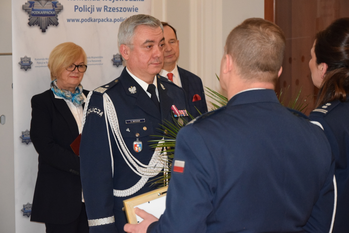 Nadinspektor Dariusz Matusiak podziękował za dotychczasową, dobrze układającą się współpracę m.in władzom wojewódzkim i samorządowym oraz przedstawicielom policyjnych organizacji związkowych. Wyrazy uznania i wdzięczności skierował także do kadry kierowniczej, dziękując za wytrwałość w codziennej służbie i pracy, podkreślając ich profesjonalizm w wypełnianiu codziennych obowiązków.