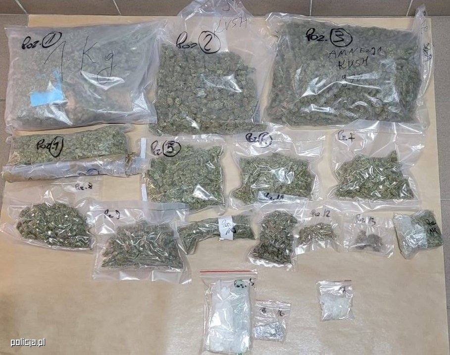 Kluczowymi okazały się szafka w pokoju oraz łóżko. To w nich mężczyzna miał ukryte narkotyki. Jak podejrzewali policjanci, niemałe ilości. Zabezpieczyli tam 14 różnej wielkości worków próżniowych z suszem roślinnym oraz zbryloną substancją. Przeprowadzone wstępne badania narkotesterem wykazały, że to 3 840 gramów marihuany, ponad 74 kokainy i kilkanaście kryształu 2-CB. Przejęte środki narkotyczne zostały przekazane do policyjnego laboratorium kryminalistycznego.