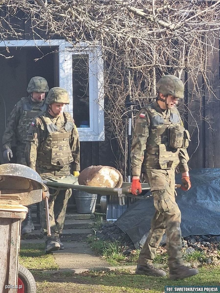 W piątkowe przedpołudnie, 16.02.2024 r., dyżurny skarżyskiej jednostki Policji odebrał nietypowe zgłoszenie. Z relacji prowadzącego prace remontowe mieszkańca Suchedniowa wynikało, że po drewnianą podłogą domu odnalazł najpewniej bombę lotniczą. Na miejsce pojechali suchedniowscy policjanci wraz z pirotechnikiem. Mundurowi potwierdzili informację o niewybuchu. Około pięćdziesięciokilgramowa bomba lotnicza rzeczywiście leżała pod podłogą domu, w którym od czasów II wojny światowej zamieszkiwali ludzie. W trakcie rozmowy z właścicielem budynku funkcjonariusze ustalili prawdopodobną genezę bytności niebezpiecznego znaleziska. Z opowiadań jego babci wynikało, że w 1945 roku, w trakcie radzieckiej ofensywy i wycofywania się wojsk niemieckich, na dom spadła bomba, która nie wybuchła. Miała przebić dach, podłogę i ugrzęznąć w gruncie. Z rodzinnej legendy wynikało, że niewybuch badali radzieccy żołnierze, ale uznali, że sprawą nie warto się zajmować, ponieważ bomba nie stanowi zagrożenia. Wówczas gospodarze naprawili podłogę i mieszkając w domu, zapomnieli o zdarzeniu. Przez wiele dekad, podczas familijnych spotkań z przymrużeniem oka przywoływano bombową historię, na którą raczej nie dawano wiary. Aż do ostatniego piątku.