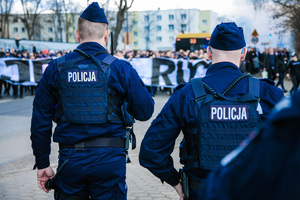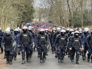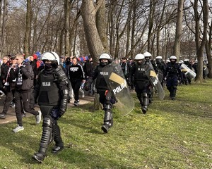 Spotkanie piłkarskie dwóch śląskich drużyn zabezpieczali policjanci z całej Polski. Czynności w sprawie identyfikacji osób, które dopuściły się przestępstw podczas imprezy masowej, prowadzą policjanci z Wydziału dw. z Przestępczością Pseudokibiców KMP Chorzów. Przypominamy, że za posiadanie materiałów pirotechnicznych, zgodnie z ustawą o bezpieczeństwie imprez masowych, grozi kara nawet do 5 lat więzienia.