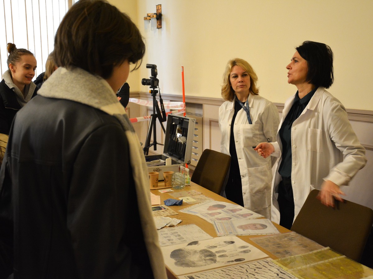 Z kolei w budynku komendy na uczniów czekała inscenizacja miejsca zbrodni. Tam, nasz technik kryminalistyki, pokazywał na czym polega jego praca przy zabezpieczaniu śladów i dowodów. Uczniom rąbek tajemnicy na temat swojej służby uchylili również policjanci pracujący w laboratorium kryminalistycznym. Pokaz pierwszej pomocy na fantomie zaserwowali z policyjni ratownicy. Dla głodnych dodatkowych wrażeń były gogle VR, gdzie w wirtualnej rzeczywistości można było wziąć udział w policyjnej akcji.