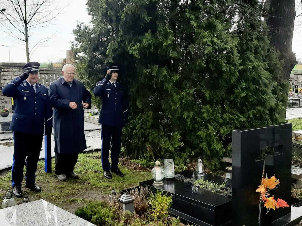 P. o. Zastępcy Komendanta Wojewódzkiego Policji w Opolu insp. Zbigniew Stanowski wspólnie z Komendantem Powiatowym Policji w Kędzierzynie-Koźlu mł. insp. Hubertem Adamkiem oddali hołd współtwórcy polskiej Policji i zapalili znicze na jego grobie.