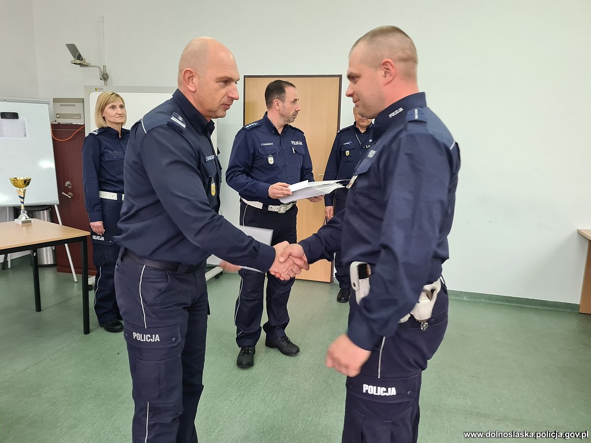 W dniach 9-10 kwietnia 2024 roku Wydział Ruchu Drogowego Komendy Wojewódzkiej Policji we Wrocławiu przeprowadził eliminacje dolnośląskie do XXXIV Ogólnopolskiego Konkursu „Policjant Ruchu Drogowego”. Podczas zmagań funkcjonariusze rywalizowali między innymi w zakresie sprawności poruszania się samochodem, umiejętności strzeleckich oraz kierowania ruchem drogowym. Laureatami zostali sierż. szt. Dawid Oksiukowski z Wydziału Ruchu Drogowego Komendy Wojewódzkiej Policji we Wrocławiu, mł. asp. Mateusz Radecki z Komendy Powiatowej Policji w Złotoryi oraz mł. asp. Paweł Dominiak z Komendy Miejskiej Policji w Legnicy.