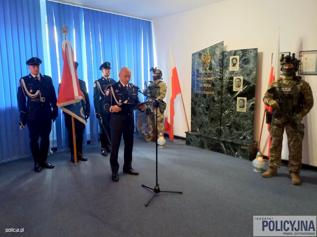 - Ponad ćwierć wieku minęło od tragicznej śmierci „Krasnala” - zwrócił się do zebranych insp. Łukasz Pikuła. - Wśród pracujących obecnie w jednostce nie ma już nikogo, kto znał Piotra osobiście. Jednak jego historię poznajemy przechodząc codziennie obok pomnika, biorąc udział w uroczystej zbiórce 24 kwietnia każdego roku, rozmawiając z byłymi funkcjonariuszami jednostki. Stał się ikoną wartości nie tylko tej jednostki, ale całej formacji. Reprezentował sobą to, co najważniejsze w służbie kontrterrorystycznej – poczucie odpowiedzialności za innych, wzajemną pomoc, zaangażowanie i profesjonalne podejście do realizacji zadań. Nie musiał tam być, tego dnia kończył już pracę, chciał pomóc innym, mniej doświadczonym. Jego poczucie obowiązku i odpowiedzialności stanowi symbol wzorowej postawy funkcjonariusza służby kontrterrorystycznej. Piotr jest dla nas symbolem bohaterstwa, ale jednocześnie to zdarzenie dobitnie uświadamia nam z jakimi zagrożeniami związany jest nasz zawód - narażanie życia jest wpisane w nasze codzienne obowiązki.