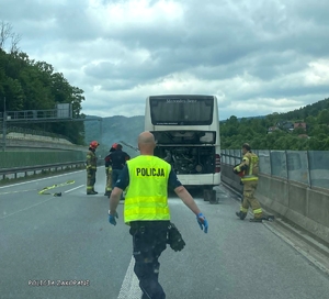Wczoraj tatrzańscy policjanci wykonujący obowiązki służbowe zmierzający radiowozem do Krakowa w rejonie miejscowości Stróża na drodze E-77 zauważyli stojący na poboczu autokar, z którego wydobywał się dym i płomienie z jego tylnej części. Z uwagi na brak służb ratowniczych na miejscu zdarzenia policjanci podjęli decyzję o natychmiastowym zatrzymaniu się i udzieleniu pomocy z uwagi na możliwe zagrożenie życia i zdrowia osób mogących znajdować się wewnątrz autokaru.