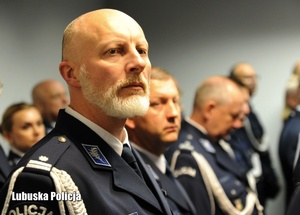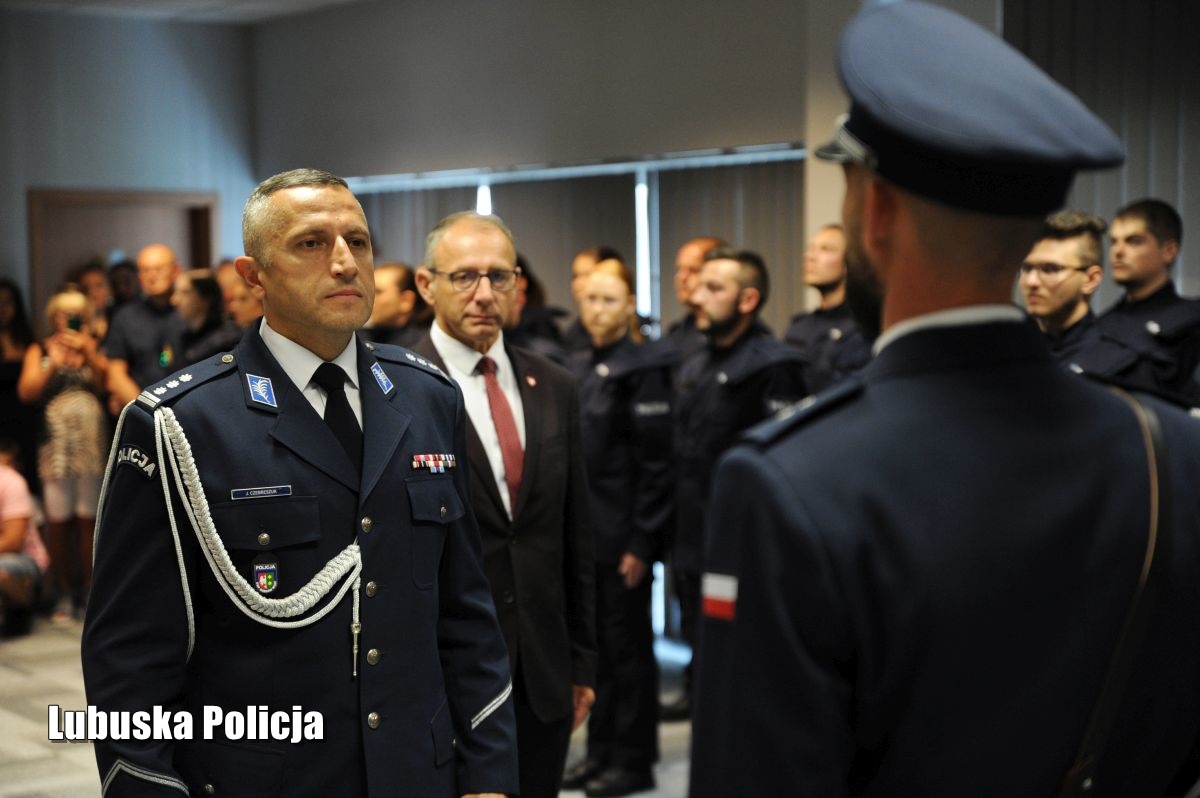 Słowa powitania do nowo przyjętych funkcjonariuszy skierował Komendant Wojewódzki Policji w Gorzowie Wielkopolskim, inspektor Jerzy Czebreszuk: