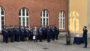 Po wręczeniu medali i złożeniu gratulacji przyszedł czas na przywitanie nowych policjantów. W szeregi naszego garnizonu wstąpiło we wrześniu 72 funkcjonariuszy, dziś 58 z nich złożyło ślubowanie.