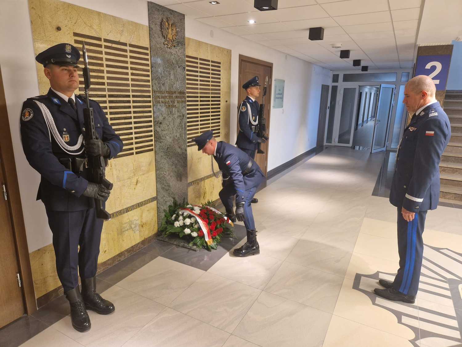 Nadinsp. Roman Kuster I Zastępca Komendanta Głównego Policji złożył kwiaty i zapalił znicze przed obeliskiem „Poległym Policjantom – Rzeczpospolita Polska” oraz przed Tablicą Pamięci w siedzibie KGP.