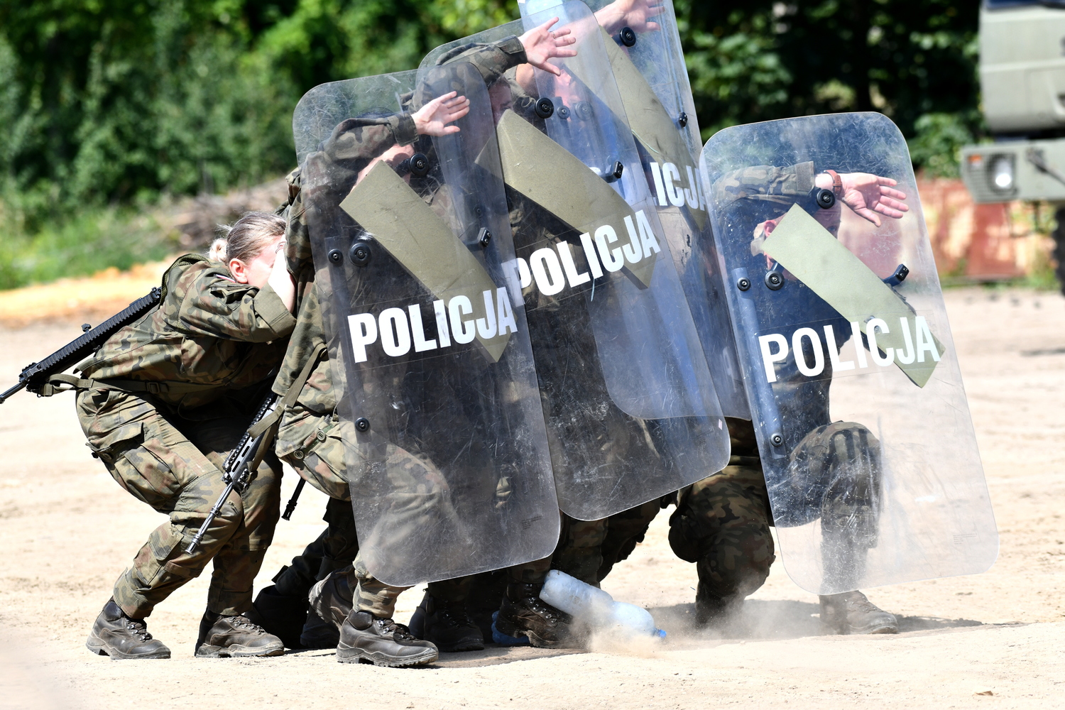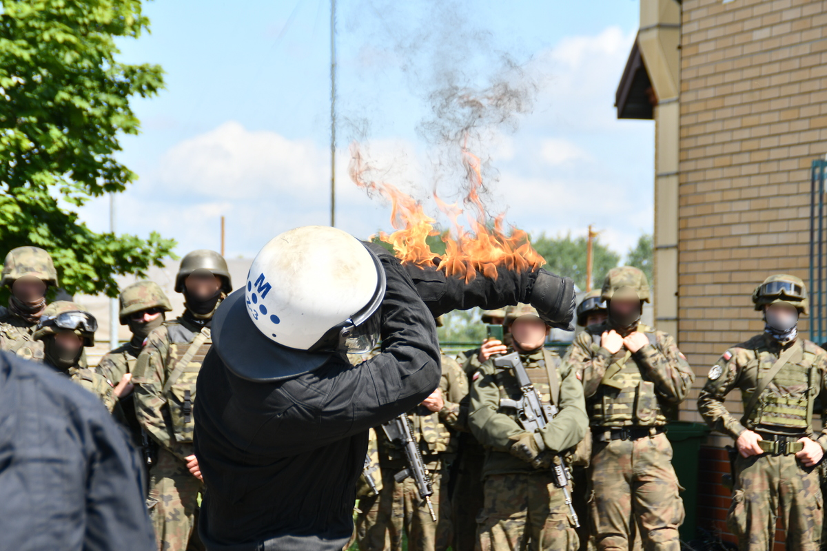 Policjanci oddziałów prewencji jako wyspecjalizowanych jednostek w działaniach pododdziałów zwartych szkolili funkcjonariuszy Straży Granicznej i żołnierzy z zakresu taktyki postępowania i działań podejmowanych wobec agresywnego tłumu, panowania nad nim oraz interwencji wobec osób z niebezpiecznymi narzędziami. Dodatkowo policyjni specjaliści prezentowali sposoby działania w zespołach z wykorzystaniem osłon np. tarcz. Przekazywali wiedzę, w jaki sposób poruszać się w pododdziałach oraz wycofywać, żeby pozostać zasłoniętym i bezpiecznym. Policjanci dzielili się własnymi doświadczeniami i wiedzą, aby zniwelować pojawiające się wobec funkcjonariuszy i żołnierzy zagrożenia.