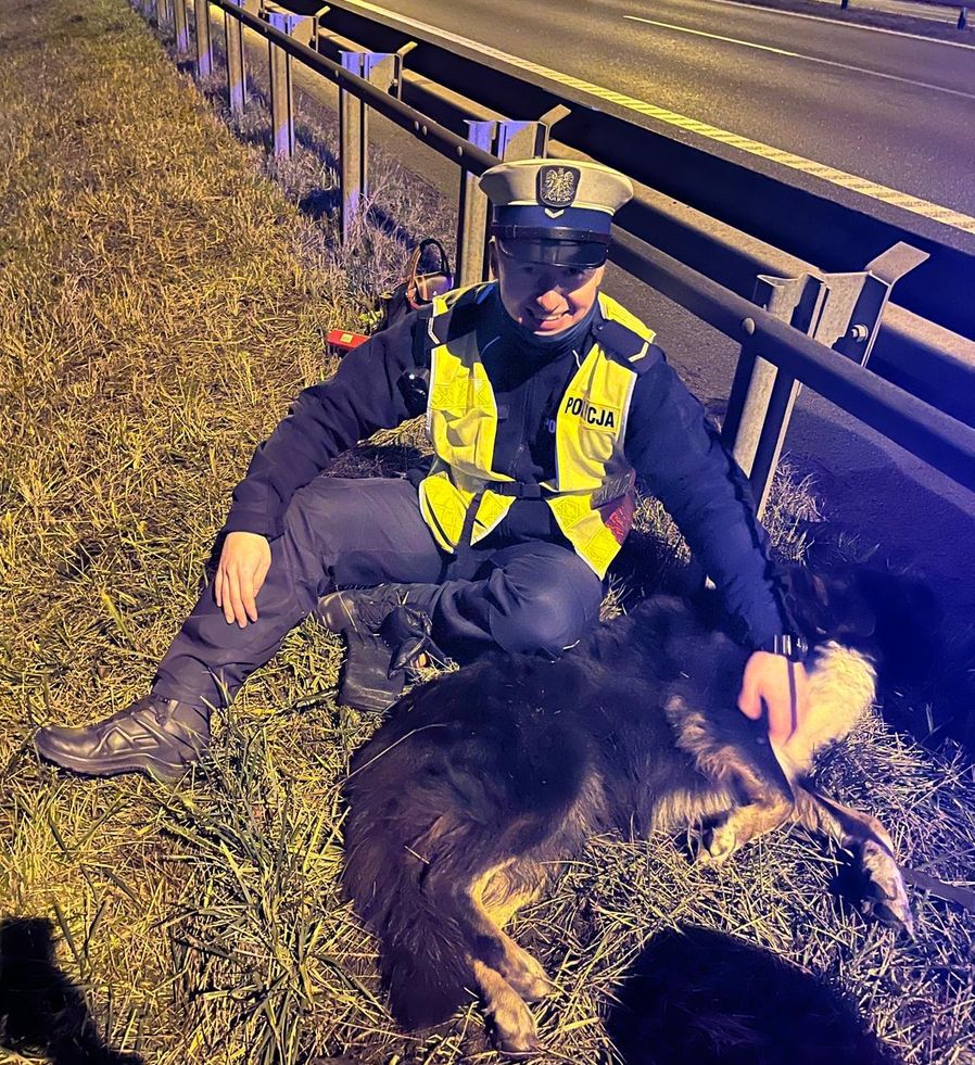 Policjanci ruchu drogowego pomogli wycieńczonemu zwierzęciu. Funkcjonariuszy powiadomili świadkowie, którzy zauważyli zbłąkanego i biegającego po drodze ekspresowej psa. Wezwani na miejsce pracownicy schroniska zaopiekowali się czworonogiem.