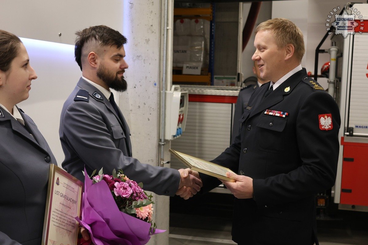 Wczoraj w siedzibie Komendy Miejskiej Państwowej Straży Pożarnej w Piekarach Śląskich odbyła się uroczysta zbiórka, podczas której Prezydent Piekar Śląskich Sława Umińska-Kajdan, szef piekarskich policjantów inspektor Paweł Dratwiński oraz komendant piekarskich strażaków starszy brygadier Tomasz Dziechciarz, podziękowali mundurowym za profesjonalizm, odwagę, niezwykłą empatię i troskę o życie drugiego człowieka.