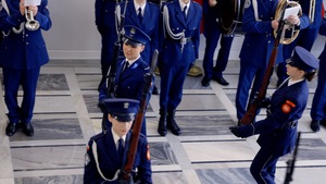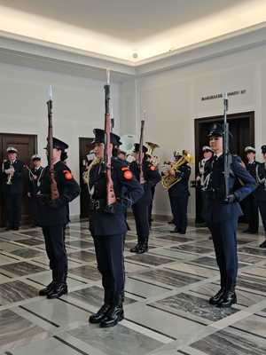 Po wprowadzeniu sztandaru Komendy Głównej Policji i odegraniu hymnu państwowego przez Orkiestrę Reprezentacyjną Policji, głos zabrała Małgorzata Kidawa-Błońska, Marszałek Senatu.