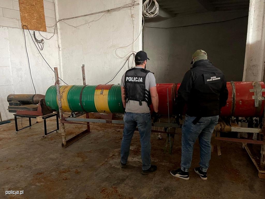 To był dopiero początek. Następnie mundurowi z Bydgoszczy, wspólnie z funkcjonariuszami KAS, skierowali się do ustalonej hali magazynowej. Po wejściu do środka ujawnili 198 worków tytoniu o wadze niemal 3 ton. Natomiast w dalszej części pomieszczenia poustawiane liczne kartony z suszem tytoniowym w postaci liści w ilości ponad 10 ton. Znajdowały się tam również urządzenia i przedmioty służące do przetwarzania suszu tytoniowego w gotowy do palenia tytoń, między innymi gilotyna, waga, puste worki polipropylenowe, wózek paletowy oraz pojemniki plastikowe z suszem.