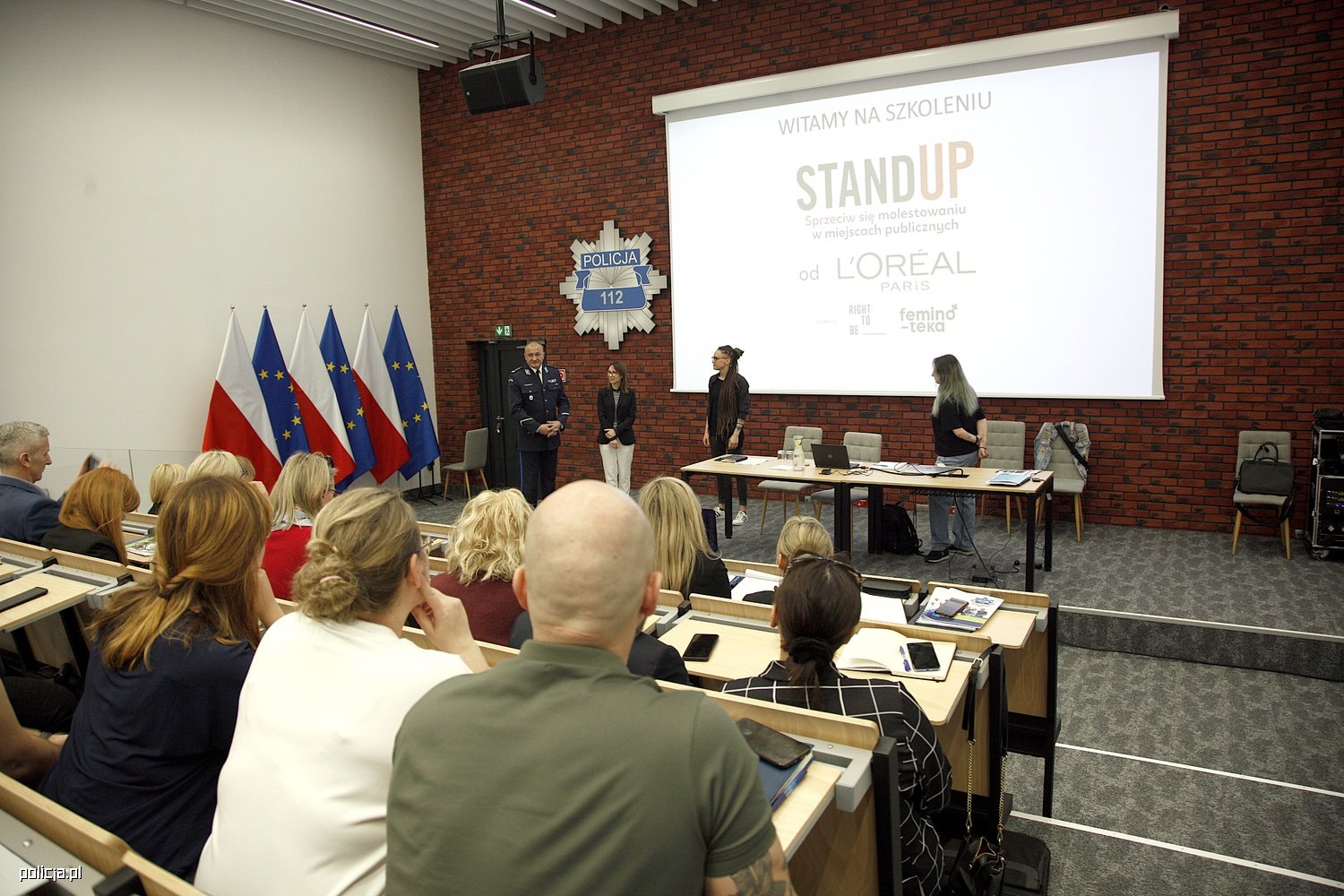 W spotkaniu udział wzięły także przedstawicielki Fundacji Feminoteka - Joanna Gzyra-Iskandar, Dyrektorka ds. komunikacji i Rzeczniczka ds. przeciwdziałania przemocy wobec kobiet oraz Izabela Możdrzeń, koordynatorka programu "Stand Up", które przywitał insp. Robert Żółkiewski, Dyrektor Gabinetu Komendy Głównej Policji. Podczas spotkania przedstawiono działania Fundacji, w tym jeden z aktualnie realizowanych przez Fundację projektów w ramach kampanii „Stand Up. Sprzeciw się molestowaniu w miejscach publicznych”. Omówienie metodologii 5D, narzędzia reagowania na molestowanie, czyli narzędzi jak nie pozostać bezradnym świadkiem i zadbać o bezpieczeństwo swoje i osoby doświadczającej molestowania, wzbudziły bardzo duże zainteresowanie uczestników spotkania i z pewnością staną się inspiracją dla realizowanych szkoleń w zakresie równości płci oraz zaowocują pogłębioną współpracą.