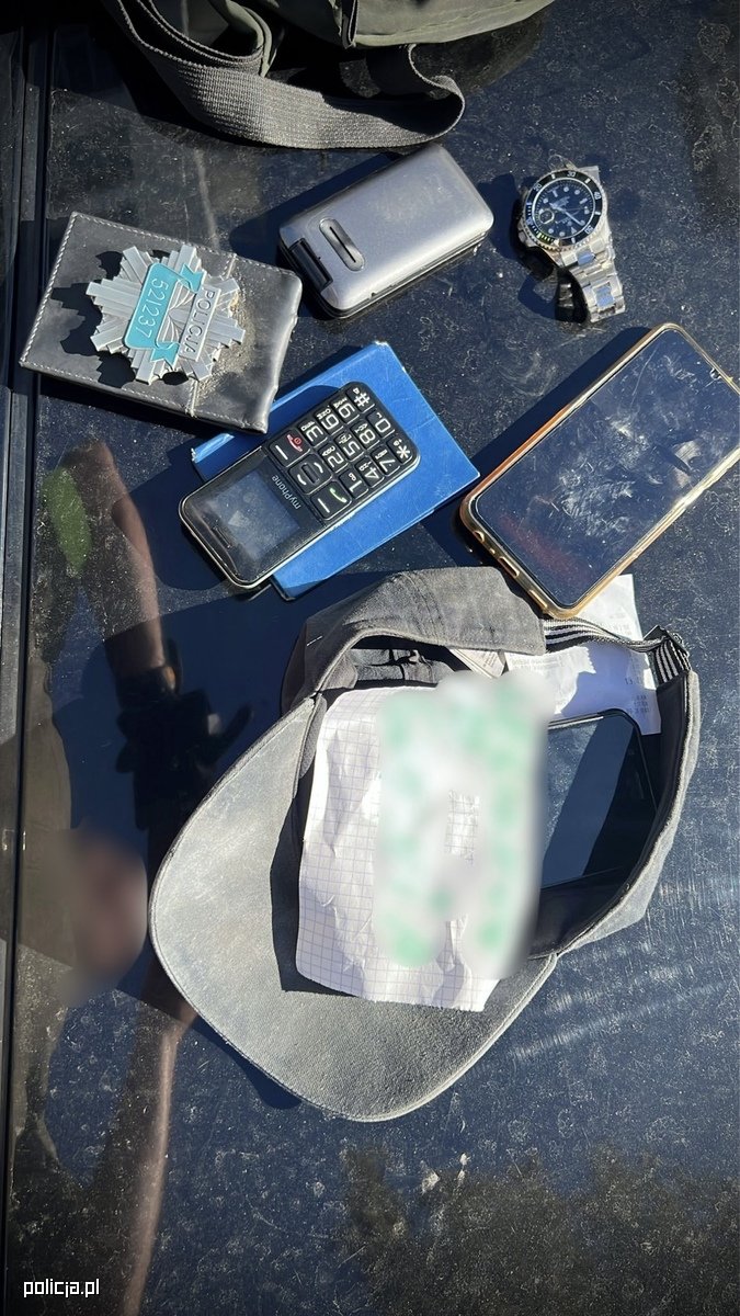 Podczas przeszukania 49 i 37-latka, a także pojazdu, którym podróżowali, mundurowi zabezpieczyli pliki przekazanej gotówki, fałszywą policyjną odznakę, telefony komórkowe, a także środki odurzające w postaci amfetaminy. Mężczyźni usłyszeli zarzuty oszustwa i posiadania zabronionych środków odurzających. Dodatkowo podczas sprawdzenia w policyjnych systemach informatycznych wyszło na jaw, że starszy z mężczyzn, który kierował autem, złamał sądowy zakaz prowadzenia wszelkich pojazdów mechanicznych.