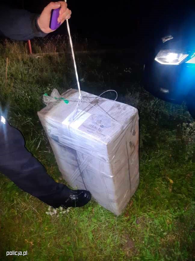 Policjanci z powiatu ostrowskiego ujawnili nietypowy sposób przemytu papierosów przez wschodnią granicę. Do transportu nielegalnego towaru wykorzystano balon, do którego przymocowano karton z 30 tysiącami sztuk papierosów bez polskich znaków akcyzy. W sprawie zatrzymano dwóch obywateli Białorusi, którzy usłyszeli zarzuty.