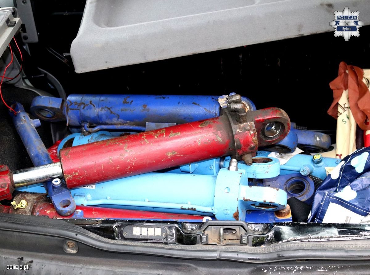 Mundurowi natychmiast udali się na miejsce i wykonali szereg czynności. W pobliżu miejsca zdarzenia zauważyli samochód osobowy, w którego bagażniku ujawnili skradzione przedmioty. Stróże prawa zatrzymali w tej sprawie dwóch mieszkańców Bytomia, 26-latka i 17-latka. Zatrzymani trafili do policyjnego aresztu. Następnego dnia mężczyźni zostali przesłuchani i usłyszeli już zarzut kradzieży. Wartość siłowników hydraulicznych została wyceniona na blisko 90 tysięcy złotych.