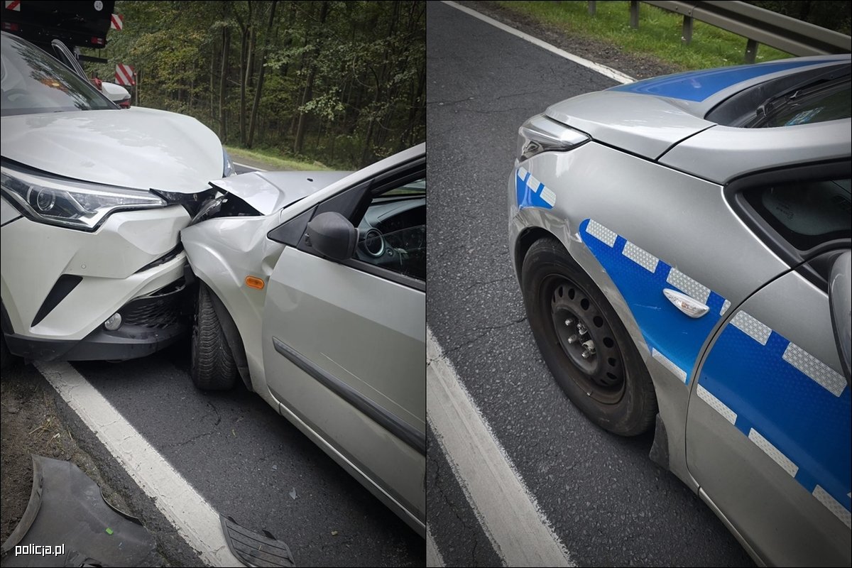 Wykorzystał korytarz życia do ucieczki, a później uderzył w radiowóz i inny pojazd - 41-latek bez uprawnień i z narkotykami