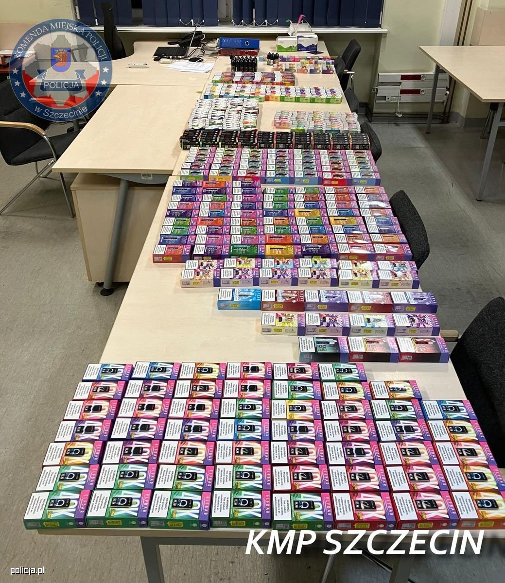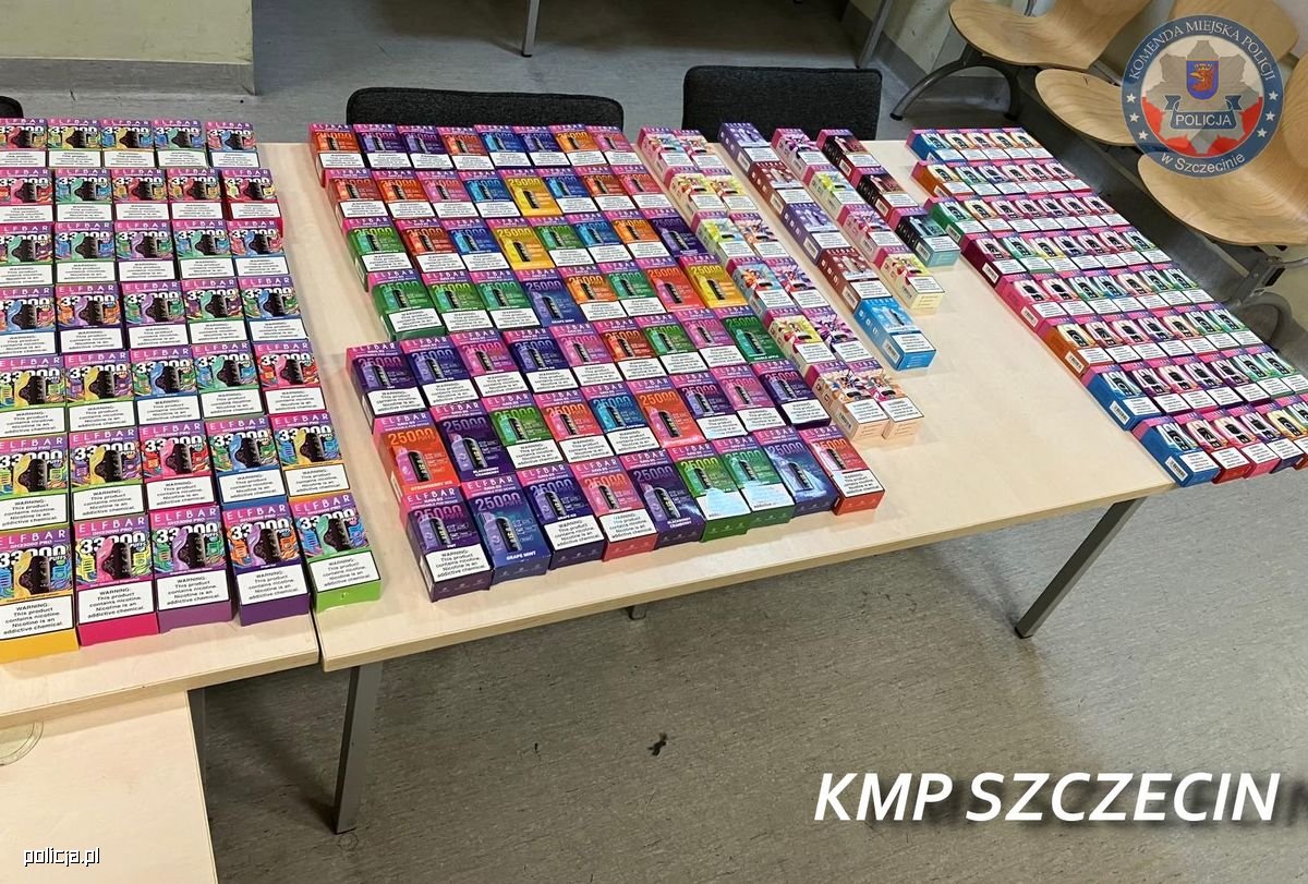 Podczas interwencji policjanci zatrzymali 45-latka, a w toku dalszych czynności przeszukali mieszkanie, w którym przebywał. Funkcjonariusze ujawnili i zabezpieczyli znaczną ilość elektronicznych papierosów oraz liquidów bez polskich znaków akcyzy.
