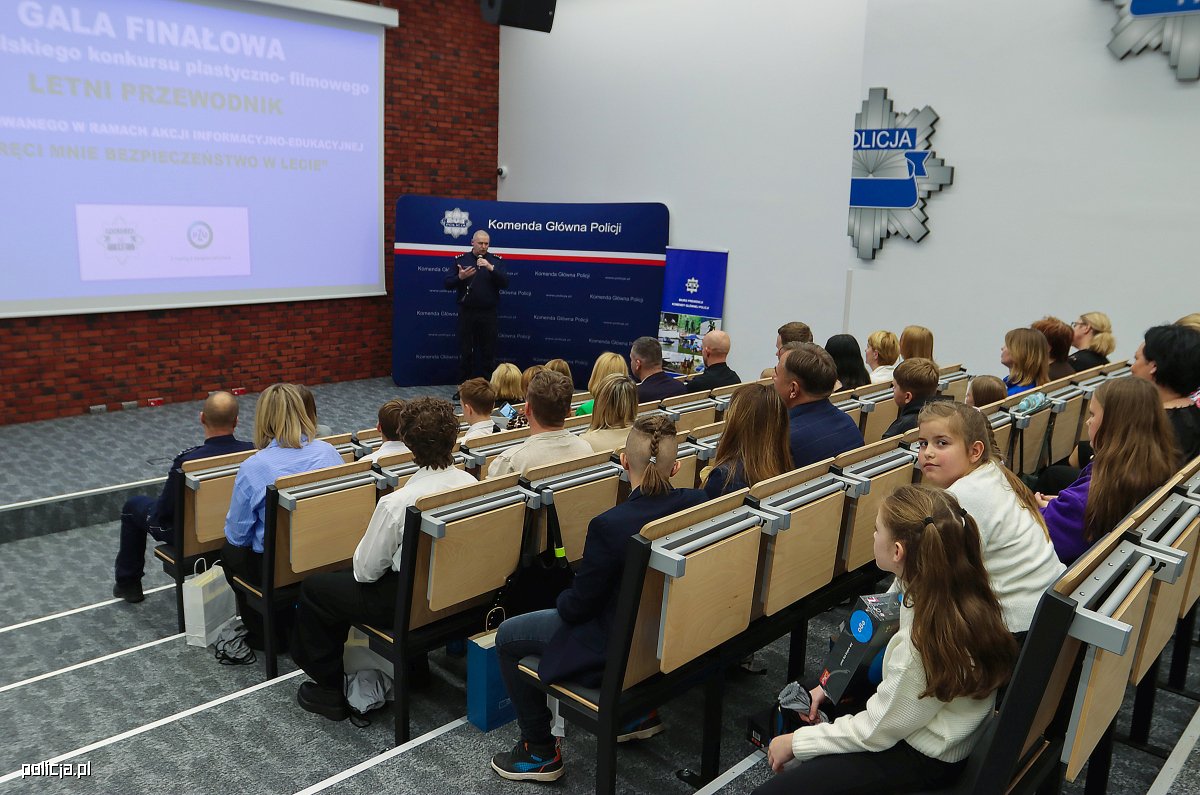 W środę, 22 października 2025 r., w Komendzie Głównej Policji przy ul. Orkana 14 w Sali im. Państwowego Korpusu Bezpieczeństwa odbyła się gala oraz wręczenie nagród laureatom konkursu dla dzieci i młodzieży pn. „Letni PrzeWodnik”. Konkurs zorganizowany w ramach ogólnopolskiej akcji informacyjno-edukacyjnej pn. „Kręci mnie bezpieczeństwo w lecie”, zorganizowany przez Komendę Główną Policji i Powszechny Zakład Ubezpieczeń S.A.