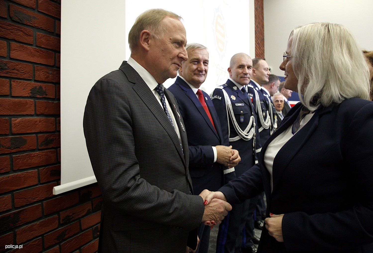 Następnie przyszedł czas na oficjalne wystąpienia gości. Jako pierwszy głos zabrał Sekretarz Stanu w MSWiA Wiesław Szczepański, który podziękował pracownikom Policji za codzienną pracę, zauważając, że jest ona czasami niedoceniana. Chciałem powiedzieć, że robimy wszystko, aby tę sytuację poprawić. (…) Szukamy innych rozwiązań. Ta rzecz, która dla nas jest najważniejsza i dla funkcjonariuszy to świadczenie mieszkaniowe. Bardzo liczymy na to, że Państwo pomożecie nam to zrealizować, ale chciałem powiedzieć jedną rzecz, ustaliliśmy z Panem Ministrem i Komendantem Głównym, że godziwie zapłacimy za tę pracę. (…) Mam też taką małą nutkę nadziei, (…) że w przyszłym roku ta nadzieja jakoś się rozwiąże i będziemy wspólnie chcieli pomóc Państwu w rozwiązaniu tej trudnej sytuacji, bo zdajemy sobie sprawę, że dzisiaj chcemy Państwu pomóc. (…) A żeby nie było tak smutno, przede wszystkim dziękuję za Waszą pracę, dziękuję za to, że w cieniu funkcjonariuszy pracujecie na to, żeby Policja na co dzień mogła dbać o bezpieczeństwo Polaków. Macie w nas orędowników, we mnie też i będziemy robić wszystko z Panem Ministrem, aby w roku 2026 poprawić Państwa sytuację, aby ona była lepsza. Czasami nawet nie pieniądza, a dyplom, czy odznaczenie, które jest formą podziękowania, też są elementem pewnej gratyfikacji. Życzymy Państwu dalszych 25 lat. Życzę spełnienia marzeń, choć Pani przewodnicząca wie, że większość marzeń kosztuje. Mam nadzieję, że te, które są kosztownym marzeniem będzie możliwe do spełnienia w roku 2026. Wszystkiego najlepszego od całego kierownictwa MSWiA.
