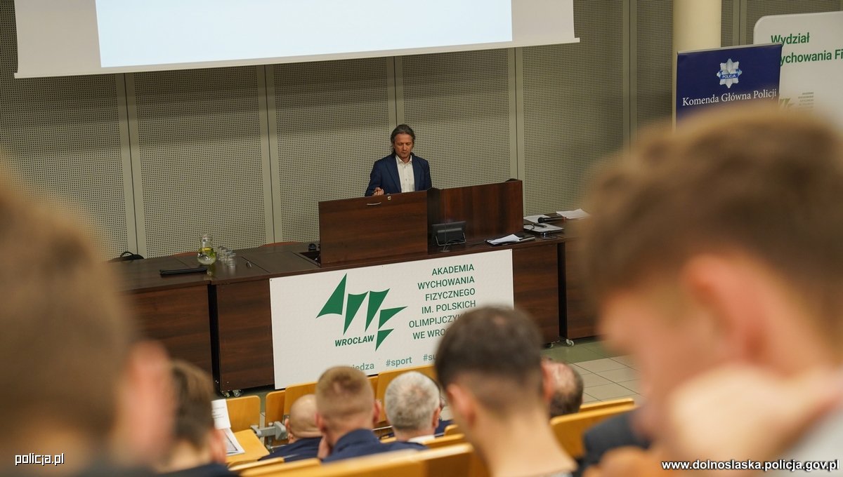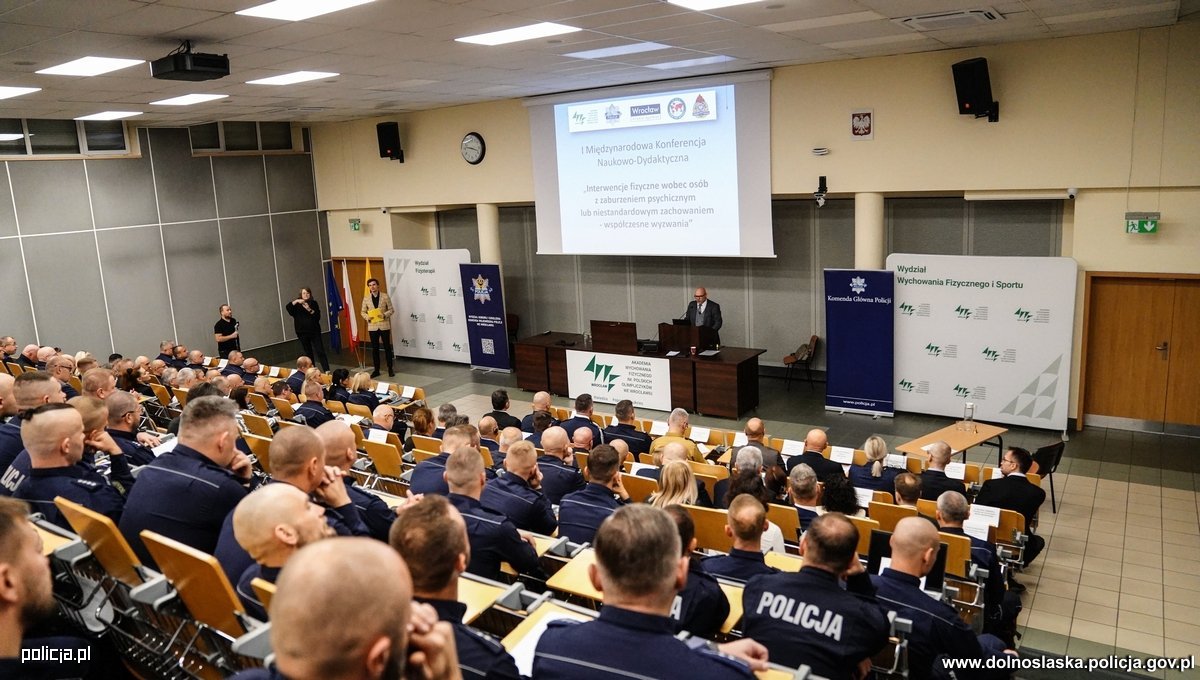 Interweniować mądrze i bezpiecznie - pod takim hasłem 27 października 2025 r. w Akademii Wychowania Fizycznego we Wrocławiu odbyła się I Międzynarodowa Konferencja Naukowo-Dydaktyczna poświęcona interwencjom fizycznym wobec osób z zaburzeniem psychicznym lub niestandardowym zachowaniem. W gronie prelegentów wystąpił nadinsp. dr Rafał Kochańczyk, Zastępca Komendanta Głównego Policji, który - obok przedstawicieli świata nauki i służb mundurowych z Polski i Niemiec - zabrał głos w dyskusji o naukowych i praktycznych aspektach interwencji fizycznych oraz współczesnych wyzwaniach w działaniach służb.