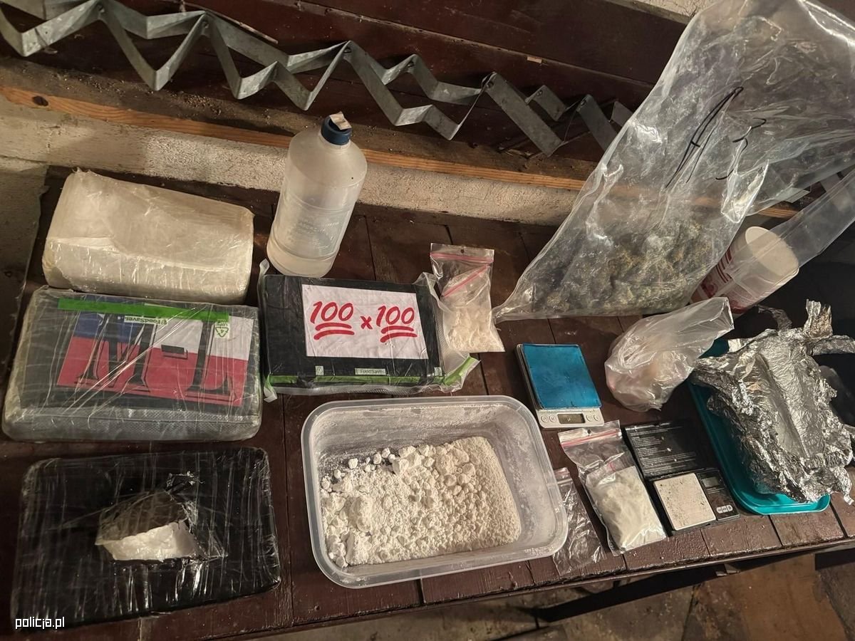 Kryminalni z komendy miejskiej uzyskali informację, że jeden z mieszkańców Tczewa w garażu może przechowywać środki odurzające. Realizując czynności w tej sprawie, w miniony czwartek operacyjni pojechali pod wytypowany adres i wylegitymowali 24-latka, który wyszedł z garażu. W trakcie przeszukania pomieszczania należącego do mieszkańca Tczewa kryminalni między innymi na stole znaleźli pojemniki z białym proszkiem, suszem roślinnym oraz substancją przypominającą żelki. Kolejne zabronione substancje kryminalni zabezpieczyli podczas przeszukania mieszkania mężczyzny. Dodatkowo do tej sprawy funkcjonariusze zabezpieczyli między innymi wagę elektroniczną, gotówkę w wysokości prawie 10 tysięcy złotych, a także telefon mężczyzny.