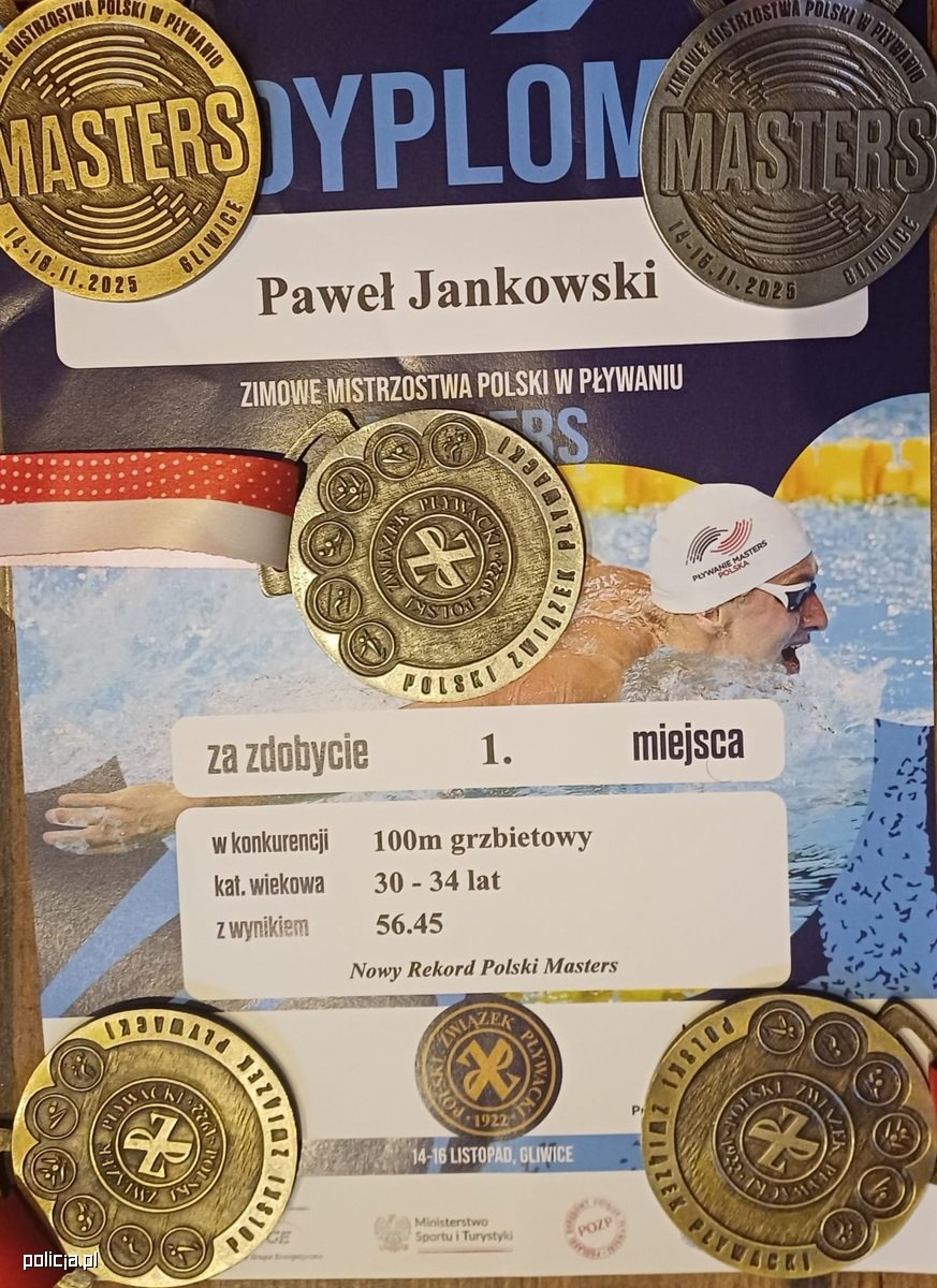 Policjant z mysłowickiej komendy - podkom. Paweł Jankowski - po raz kolejny stanął na podium. Mysłowicki mundurowy wywalczył cztery złote i trzy srebrne medale podczas Zimowych Mistrzostw Polski w Pływaniu Masters. Zawody odbyły się w dniach od 14 do 16 listopada w Gliwicach. To już kolejne sukcesy Pawła w tej dyscyplinie!