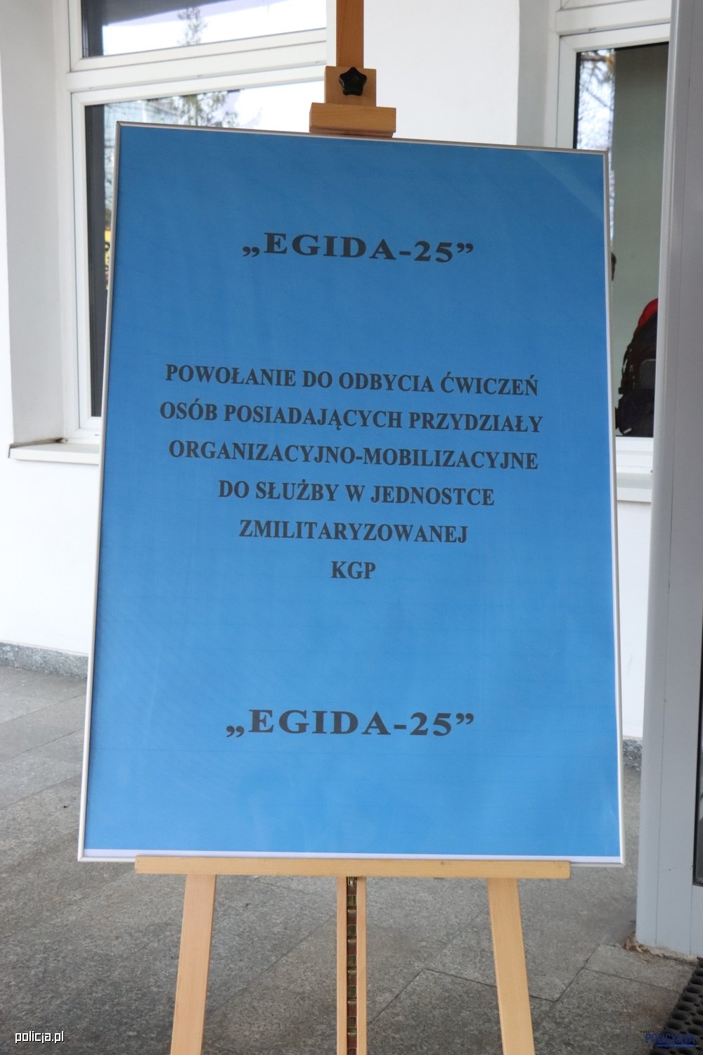 Głównym tematem ćwiczenia pk. „EGIDA-25” było powołanie do służby pracowników Policji, którym kierownicy jednostek organizacyjnych przewidzianych do militaryzacji nadali przydziały organizacyjno-mobilizacyjne do służby w jednostkach organizacyjnych Policji. Celem ćwiczenia było sprawdzenie możliwości przejścia jednostek organizacyjnych Policji w tryb działania na czas zagrożenia oraz podniesienie poziomu przygotowania do realizacji procedur związanych z nadawaniem przydziałów organizacyjno-mobilizacyjnych.