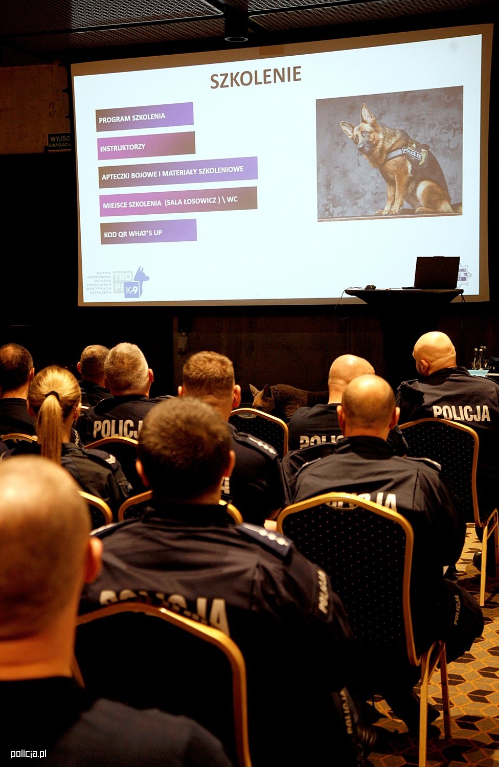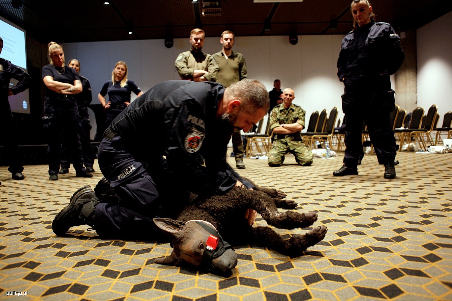 W programie szkolenia znalazła się część teoretyczna i praktyczna. Oprócz podstawowych wiadomości na temat budowy anatomicznej, parametrów życiowych, badania i komunikacji z psem poszkodowanym, w kilku blokach uczestnicy w praktyczny sposób poznali istotne zagadnienia dotyczące pierwszej pomocy psom służbowym. Policjanci szkolili się z tematów K9 First Aid/TECC/TCCC, wykorzystania zmodyfikowanego dla K9 protokołu M3ARCH3 jako uporządkowanie działań ratowniczych przy rannym psie i wykorzystanie akronimu PAWS (pain, anitbiotics, wounds, splinting). Praktyczne umiejętności pierwszej pomocy w urazach i nagłych stanach u psów, funkcjonariusze zdobywali na specjalistycznych fantomach K9 DIESEL, posiadającym 28 funkcji i miejsc wykonywania procedur medycznych. Policjanci praktykowali pierwszą pomoc przedweterynaryjną w zatrzymaniu oddechu i krążenia, masywnych krwotokach, urazach klatki piersiowej, wytrzewienia, hipotermii, amputacji urazowej, złamań, zwichnięć, odwodnienia, udaru cieplnego, wstrząsu anafilaktycznego i zatruć.