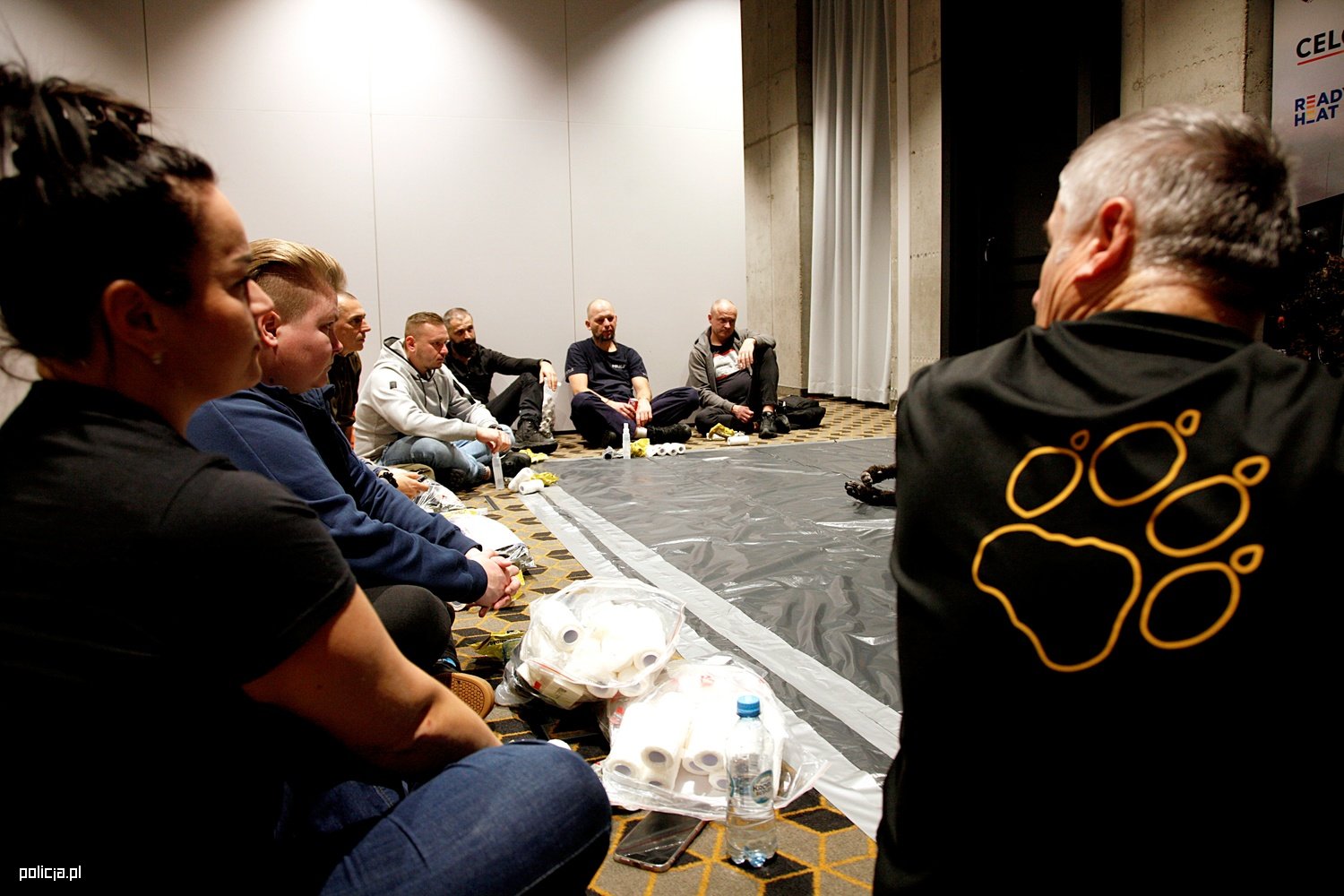 W czterodniowym szkoleniu udział wzięli przewodnicy psów służbowych z KWP we Wrocławiu, Krakowie i Komendy Stołecznej Policji, funkcjonariusze Służby Więziennej i Straży Granicznej oraz policjanci z Litwy i Estonii. W części praktycznej uczestnicy ćwiczyli wykorzystanie zmodyfikowanego dla K9 protokołu M3ARCH3 porządkującego działania ratownicze przy rannym psie i wykorzystanie akronimu PAWS (pain, anitbiotics, wounds, splinting).