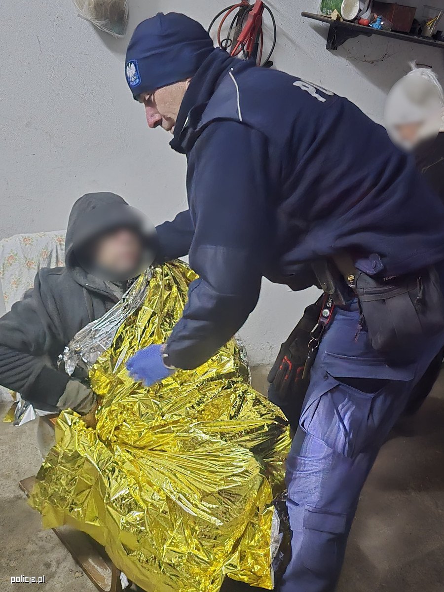Mundurowi, którzy udali się na miejsce sprawdzili okolicę i znaleźli mężczyznę w stanie skrajnego wychłodzenia, który nie był w stanie chodzić o własnych siłach. Pokrzywdzony wykazywał objawy zagrażające życiu.Funkcjonariusze udzielili mu pierwszej pomocy przedmedycznej, niezwłocznie przenosząc mężczyznę do bezpiecznego pomieszczenia udostępnionego przez pobliskiego mieszkańca.