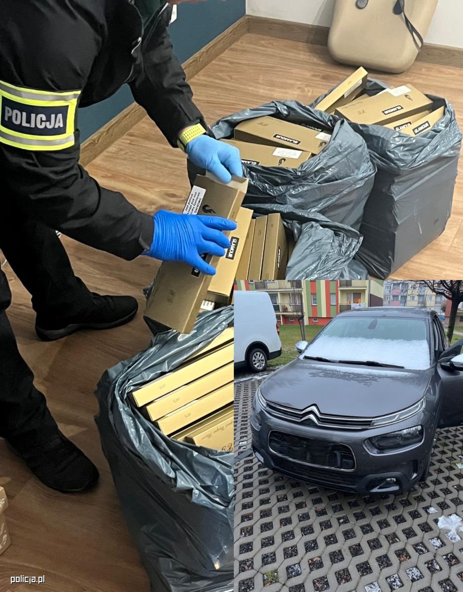 Kępińscy kryminalni zatrzymali 46-latka, 54-latka i 21-latkę, a także odzyskali skradzione auto i zabezpieczyli około 70 tys. szt. papierosów bez polskiej akcyzy skarbowej. Wartość uszczuplenia Skarbu Państwa z tytułu niezapłaconego podatku wynosi ponad 78 tysięcy złotych. Cała trójka zatrzymanych odpowie za kradzież z włamaniem, oszustwo, a 46-latek dodatkowo za paserstwo akcyzowe. Grozi im kara do 10 lat pozbawienia wolności oraz wysoka grzywna.