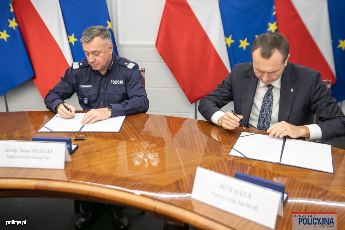 Komenda Główna Policji oraz PKO Bank Polski podpisały porozumienie o współpracy, którego celem jest zwiększenie bezpieczeństwa finansowego obywateli oraz i przeciwdziałanie nowoczesnym formom oszustw. Dokument sygnowali nadinsp. dr Tomasz Michułka, Zastępca Komendanta Głównego Policji oraz wiceprezesi Zarządu PKO Banku Polskiego – Piotr Mazur i Tomasz Pol. Współpraca obejmie działania edukacyjne i profilaktyczne skierowane przede wszystkim do seniorów, ich opiekunów oraz młodzieży.