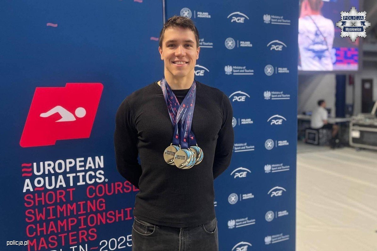 Policjant z mysłowickiej komendy, podkom. Paweł Jankowski zakończył swój udział w Mistrzostwach Europy Masters na krótkim basenie w Lublinie z pięcioma złotymi medalami! Paweł zdobył dwa złota indywidualnie i trzy w sztafecie! Gratulujemy naszemu koledze wielkiego sukcesu!