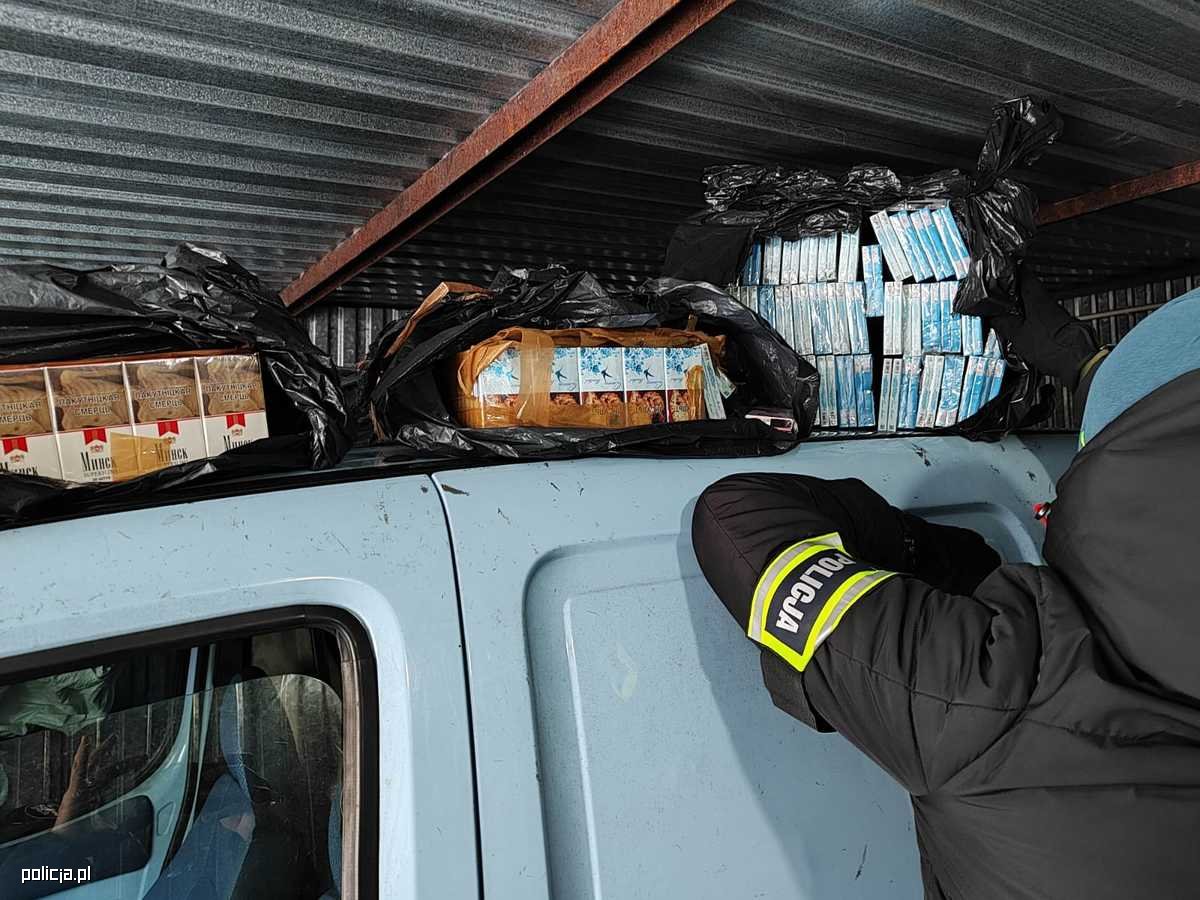 Łącznie policjanci zabezpieczyli blisko 11 900 paczek papierosów, 1,5 kg tytoniu oraz 192 litry alkoholu. Badania cieczy przeprowadzone przy użyciu spektrometru wykazały, że zawierała ona etanol. Wartość uszczuplonych należności publicznoprawnych na szkodę Skarbu Państwa spowodowanych działalnością tego mężczyzny oszacowano na ponad 400 tysięcy złotych.