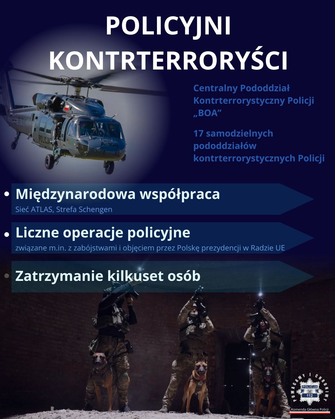 W strukturach polskiej Policji funkcjonuje 17 samodzielnych pododdziałów kontrterrorystycznych Policji oraz Centralny Pododdział Kontrterrorystyczny Policji „BOA”, który pełni rolę wiodącą i koordynacyjną. Służbę w tych formacjach pełnią funkcjonariusze starannie wyselekcjonowani pod względem psychofizycznym, zdrowotnym i predyspozycji intelektualnych, systematycznie poddawani specjalistycznym szkoleniom.