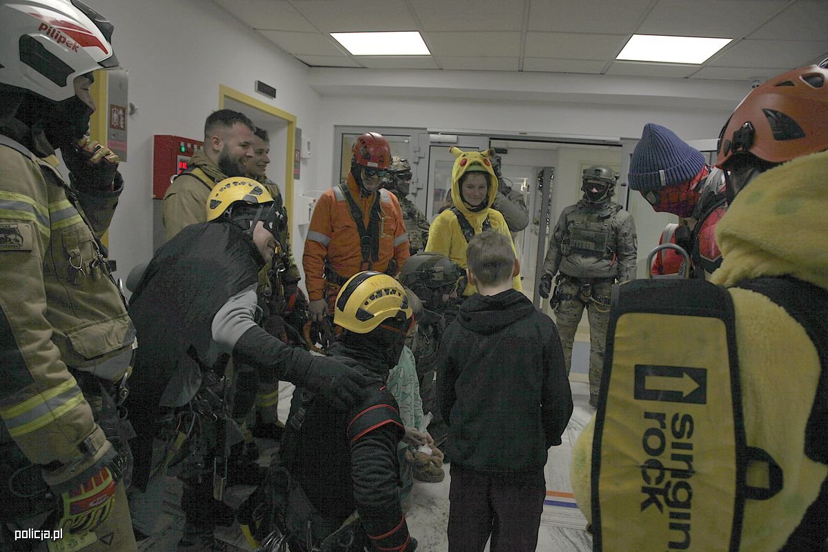 Na co dzień działają w pełnym uzbrojeniu, w sytuacjach najwyższego ryzyka. Realizują najtrudniejsze i najbardziej wymagające zadania. Tym razem ich misja miała zupełnie inny charakter - niosła uśmiech, otuchę i poczucie, że pomoc ma wiele wymiarów. Wpięci w liny, z uśmiechem zaglądali przez szpitalne okna, machali do najmłodszych pacjentów, żartowali, a podczas wizyty w salach wręczali im drobne upominki. Dla dzieci była to chwila prawdziwej magii - pełna radości, zaskoczenia i emocji, które na moment pozwoliły zapomnieć o szpitalnej codzienności.